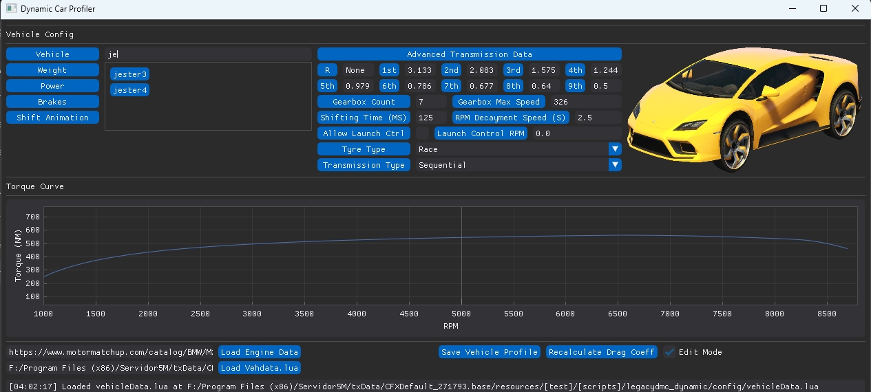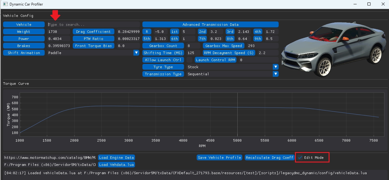 Once the car's selected you're free to edit any aspect of it, and after done pressing the "Save Vehicle Profile" button.